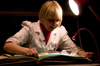 Dr. Patricia Baker (Shona Reppe) is a scrapologist, a leading member of S.C.R.A.P. (the Society for Care, Repair, and Analytical Probing). As she explains, scrapbooks are books of scraps, and scraps are…anything interesting. The performance rests on her one-woman exploration of a scrapbook in a scrapology laboratory.