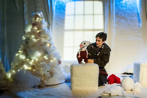 Snow Mouse isn’t alone in his adventures. He’s woken up by a little boy intent on touching, tasting and travelling every inch of the white stuff, and together they spend the day gliding over frozen ice, sliding down hills of snow, and keeping each other warm. Performer Frank Wurzinger so convincingly feels the cold that the room does start to seem a bit chilly, though in reality the set is more furry than snow-flakey. Shoes come off as the audience are welcomed into a perfectly white winter wonderland, with Edwina Bridgeman’s gorgeous design as nice to feel as it is to look at.