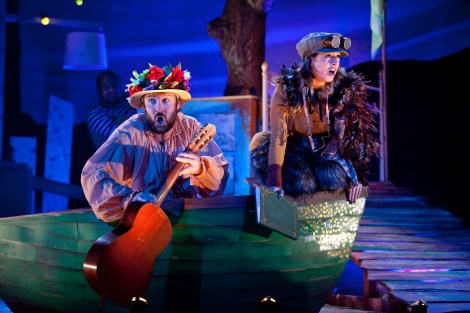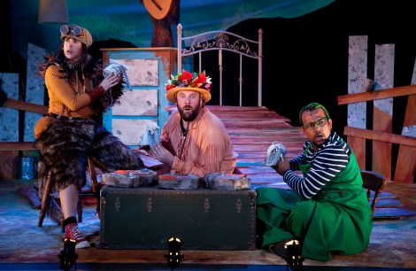 Designer Sophia Lovell Smith’s set and sumptuous costumes find the balance between quirky and high quality, so though the characters live in a mixed-up world of random odds and ends (Quangle Wangle Quee, for instance, wears a kilt, boxer boots, and a flowery hat; the trio fish for their tea in a chest of drawers) in an ineffable way it does all make sense, when it could so easily have seemed like someone closed their eyes and pointed at random items in an old charity shop. The action is further elevated by composer Rebecca Applin’s exceptional music and songs, performed with impressive harmonies from the cast. In fact, it’s easy to imagine The Owl and the Pussycat finding a home on a West End stage.