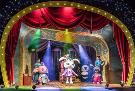 Most of the productions reviewed on this website, particularly those aimed at very young audiences, are either original productions, or book adaptations. Two shows on tour this year though are presented instead as ‘live’ versions of popular CBeebies shows: Bing and In the Night Garden. Both are produced by the same company, Minor Entertainment, under licence from the production companies of the TV shows. The company’s vision is to create “family theatre events”, which gives a clue as to how they approach their shows: as more than just a theatre performance.