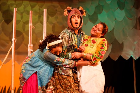 Three Sat Under the Banyan Tree is the first ever UK stage adaptation of the Panchatantra, a 4,000 year old collection of animal stories described as India’s Aesop’s Fables. Shamser Sinha’s script puts the collection to its original purpose as a guide to life: three orphans, fleeing a king and escaping across the Himalayas, open the magical book under the branches of a Banyan tree to find important life lessons contained within its stories.