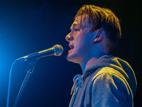 Off the Grid is part gig-theatre, stages set up at either end of the performance space as Kelly and Connor take turns to tell their stories while the other accompanies them with music. Sound design helps to explore the siblings’ different perspectives on the same event, and the sometimes unreliable nature of their memories. An after-show Q&A reveals composer Guy Connelly’s intentions: the play’s theme, a song both Connor and Kelly sing, gradually degrades over the course of the productions, the sound of the siblings’ relationship fracturing; sudden sparks of grating noise interrupt the action to indicate jumps in time or glitches in memory.